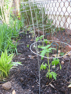 After slowly watching the progress of the indoor seedlings, I'm surprised every day to walk out to the garden to see the peas, beans, swiss chard, kale and carrots planted by seed in the garden to rise up and expand each and every day. The lettuces on the other hand, have been slow. Really slow. After nearly two months, I have just a few leaves! My kohlrabi plants look remarkably like the kale, which I've planted right next to one another.